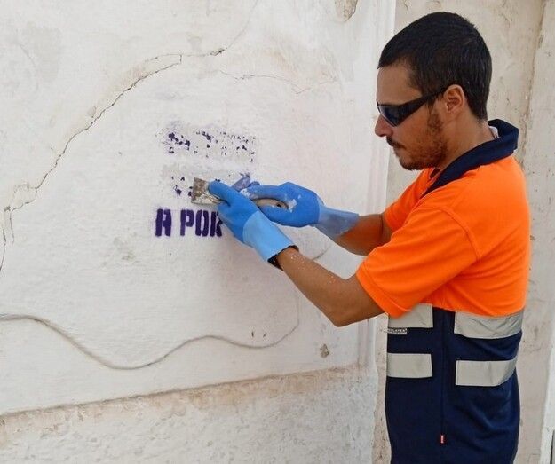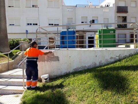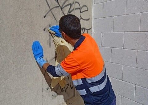 La delegación de Limpieza trabaja en eliminar las numerosas pintadas sobre "puteros" que han aparecido en Rota