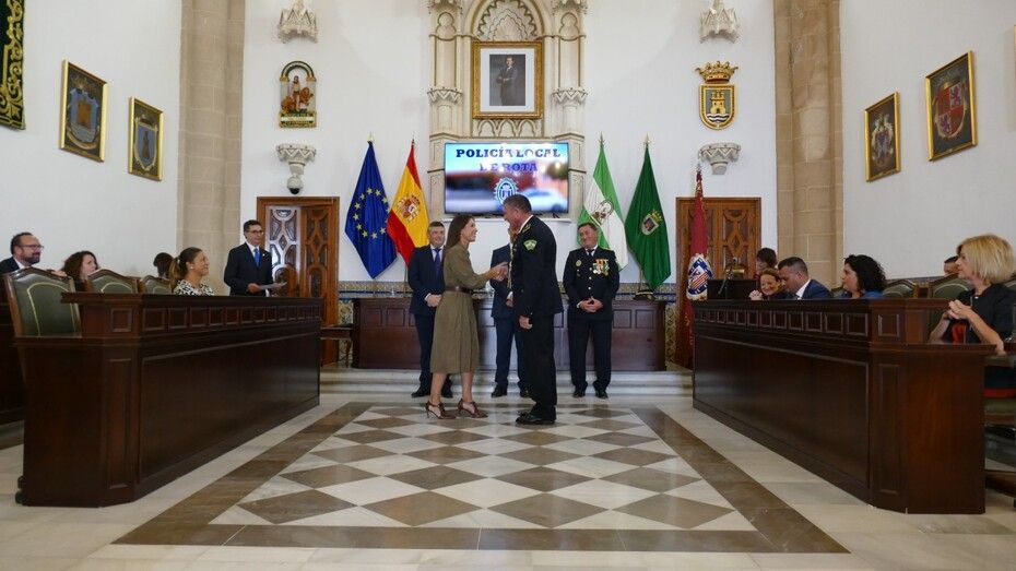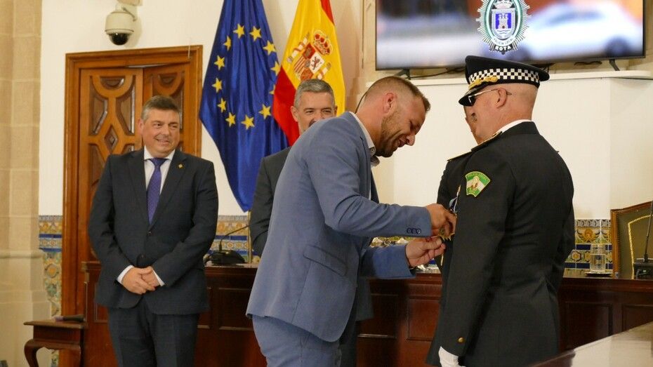 Como jefe quiso felicitar a los policías que hoy han recogido distinciones por actuaciones puntales de servicio, por llevar 30 y 35 años en el cuerpo y a las personas que han sido condecoradas con la Medalla de la Policía, como el empresario belga Jan De Clerck, el Motoclub "Los camaleones" y el almirante del Arsenal de Cádiz, Ricardo Hernández.
