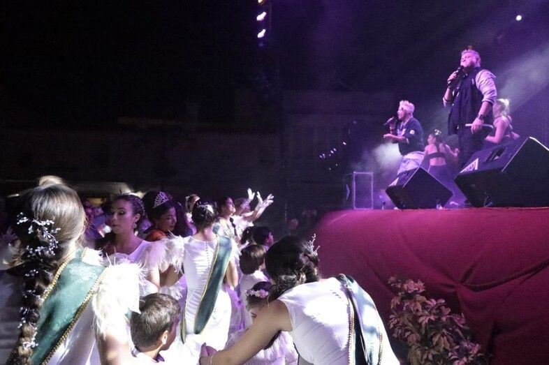 Las damas del Rosario y pajes en primera fila, y muchos jóvenes y ciudadanos casi llenaron esta céntrica plaza que durante un par de horas pudo bailar al ritmo de la música urbana de este trío de artistas ofreció entregado al público que bailó y disfrutó.