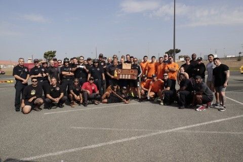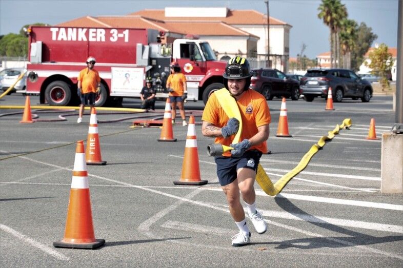 Coincidiendo con el desarrollo de la semana de la prevención que está desarrollando el cuerpo de Bomberos de la Base Naval de Rota, un grupo de voluntarios de Protección Civil de Rota ha participado en este martes en la 'Fire Muster’.