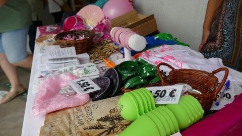 Como siempre, se aprovecha la salida a la calle para exponer en su mesa una serie de artículos que están a la venta por un módico precio para que los ciudadanos que lo deseen colaboren. Pulseras, espejos de bolsillo, set de manicura, pequeños costureros para el bolso, abanicos, paraguas, monederos, neceser, bolígrafos, etc., se vendían hoy para recabar fondos que sigan ayudando a Rolucan a continuar con su trabajo en la localidad.