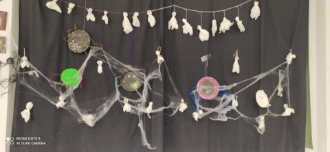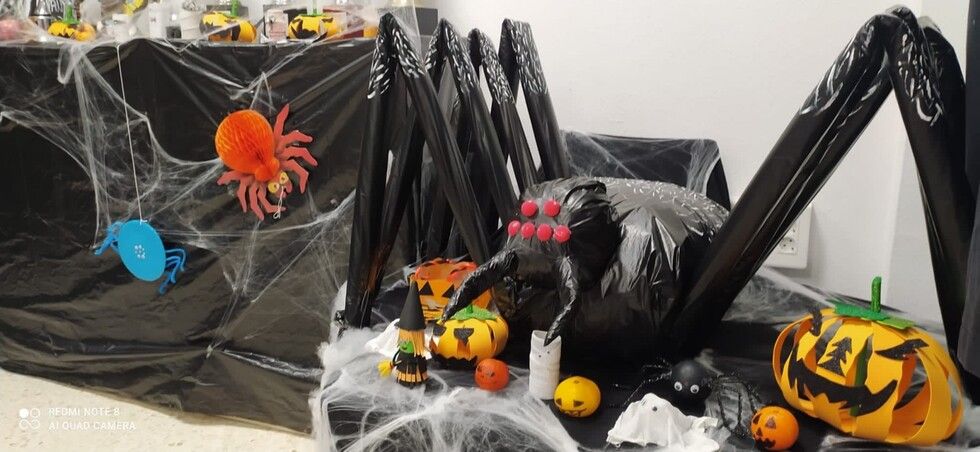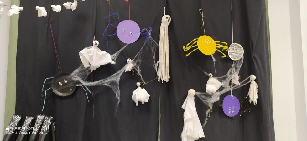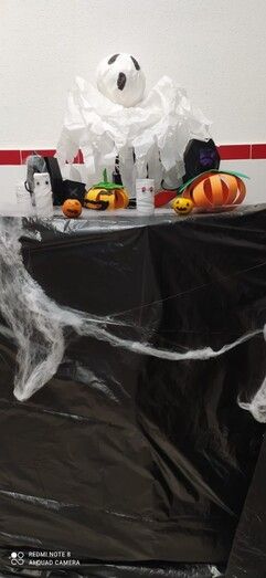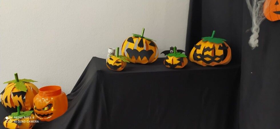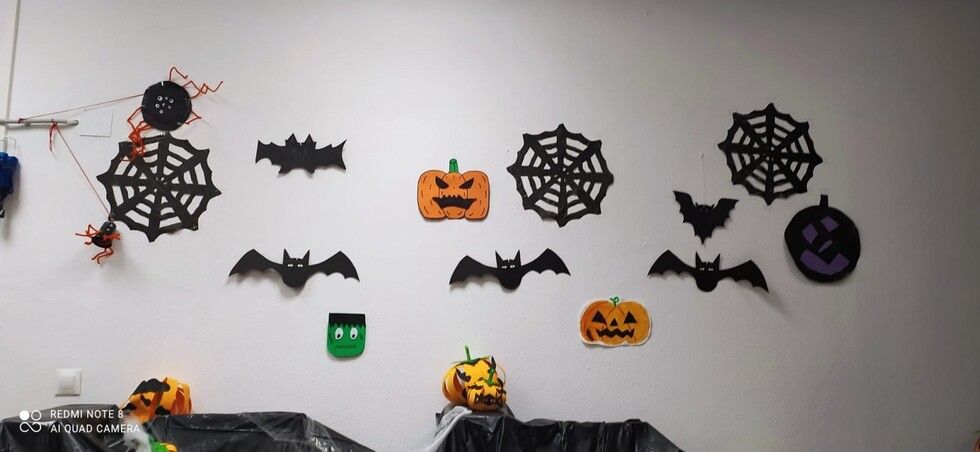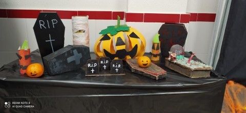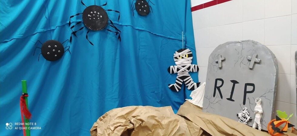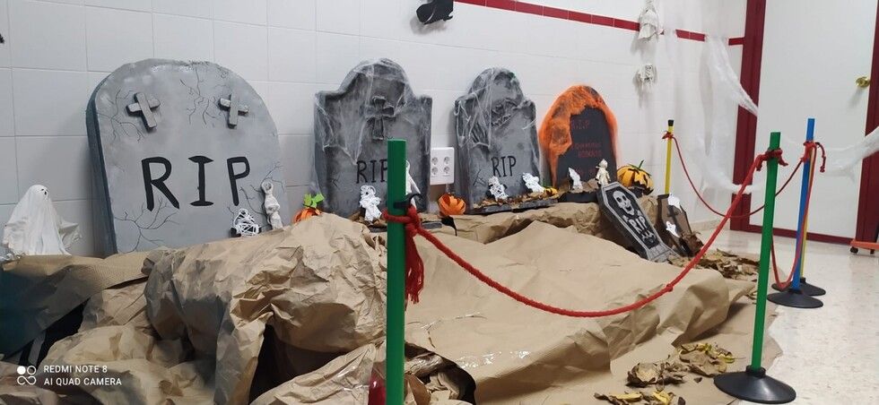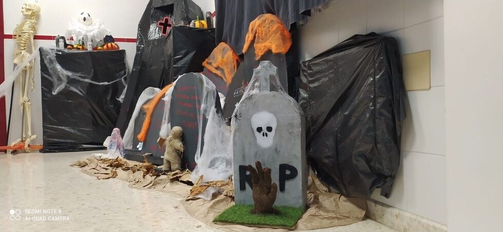 Durante varias semanas se ha llevado a cabo un trabajo conjunto reciclando material y creando los motivos que luego se han ido distribuyendo por todos los espacios. Calabazas, calaveras, telarañas, brujas, fantasmas, esqueletos, tumbas y hasta momias, se han podido ver en este primer Halloween organizado por el colegio Azorín que ha disfrutado con sus alumnos de esta fiesta. Además, a primera hora de la mañana se ha ofrecido un pase para las familias que luego ha continuado con los diferentes grupos de alumnos a los que han querido sorprender con "distintas y tenebrosas criaturas" que han ido apareciendo por pasillos y rincones.