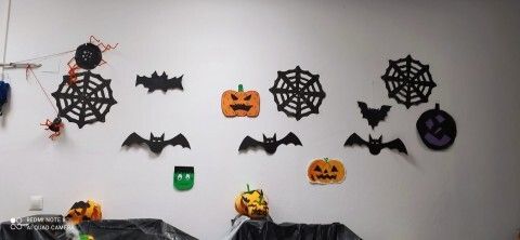 La jornada de hoy se ha completado con bailes de disfraces, ya que muchos alumnos han acudido luciendo disfraz terrorífico y con la proyección de film acordes a esta misma temática que marcará también buena parte de las actividades del fin de semana.
