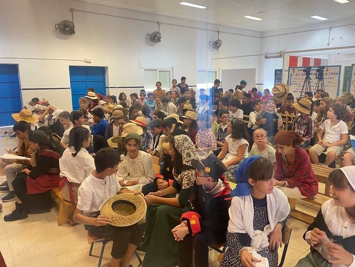 [Img #179307]De esta forma, el salón de actos del Luis Ponce de León ha sido toda la mañana el escenario en el que los alumnos han escenificado este corto que ha podido disfrutar la comunidad educativa en una jornada muy mayeta donde no solo los actores, sino que todos los alumnos, profesorado, AMPA y el conserje del centro, han acudido caracterizados como típicos mayetos roteños, convirtiendo el centro en un "colegio mayeto".