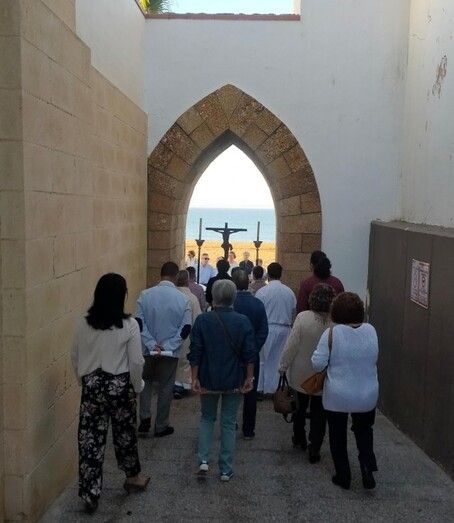 Hoy, oficiada por el cura párroco de la iglesia de Nuestra Señora de la O, José Arjona Gil, en el arco del paseo marítimo cercano al hotel Duque de Nájera, han participado fieles y devotos así como hermanos de la Hermandad del Nazareno que hace años retomó esta celebración tras varios años de interrupción para que esta tradición no se perdiera en la villa.