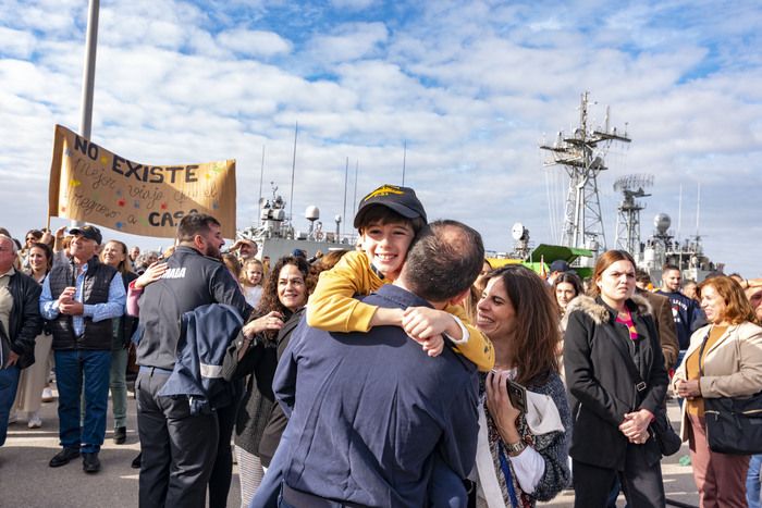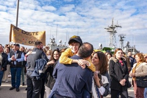 Abrazos, lágrimas, caras de alegría y la satisfacción de estar de vuelta en casa, han marcado el regreso de la "Numancia" a la Base Naval de Rota.