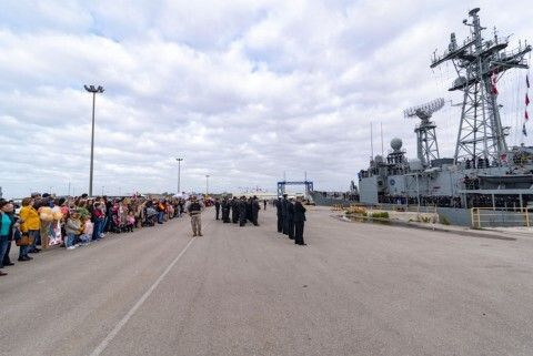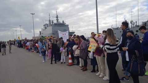 Por eso, esta mañana, en un sencillo acto presidido por el Almirante de la Flota, Eugenio Díaz del Río, se ha vivido una emoción especial. Más de cuatrocientos familiares han esperado a pie de muelle a la tripulación y lo hacían con pancartas caseras, en cartulinas y alguna, de gran dimensión donde se podía leer las ganas del reencuentro y la bienvenida tan esperada. Y es que durante todos los despliegues, y particularmente en este último, los familiares de la dotación son partícipes desde España, en la Operación, y su apoyo constituye un elemento esencial en el éxito de estas misiones.