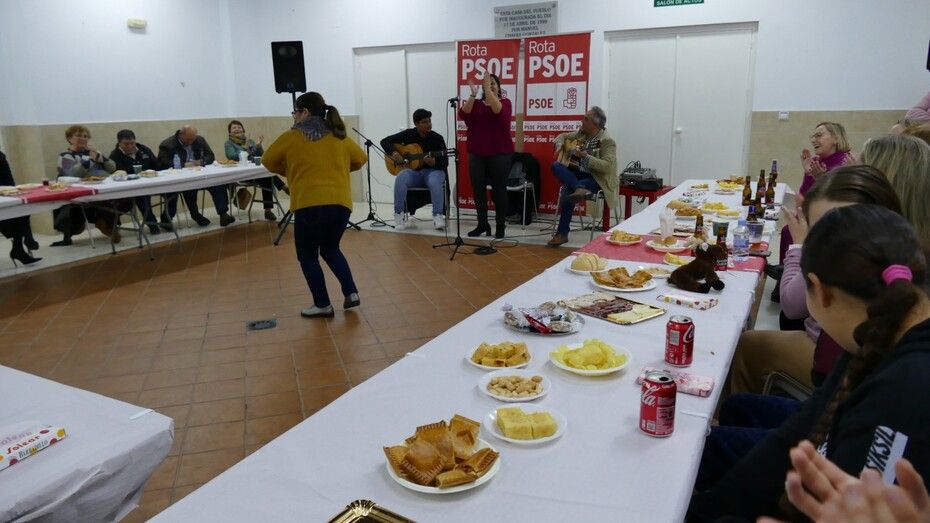[Img #181209]En la tarde de ayer, el PSOE celebró su tradicional convivencia navideña invitando a simpatizantes y ciudadanos en general a pasar un buen rato en la sede socialista que estuvo animada por el cante de la roteña Rocío Ruiz. Villancicos y canciones populares propias de estas fechas dieron ambiente a una cita habitual cuando llega estas fechas y con las que este partido quiere compartir los buenos deseos de cara al nuevo año y hacer balance del que está a punto de terminar.  Un año que, como decía el secretario general del PSOE y alcalde de Rota, Javier Ruiz, ha sido importante en la culminación de algunos proyectos de calado para la localidad.