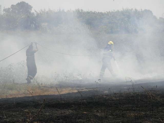 Alertados por la llamada del propietario de una parcela colindante, se personaron en el lugar de los hechos agentes de la Policía Nacional, Policía Local y miembros de Protección Civil encargados desde el primer momento de las labores de extinción de las llamas que dado el viento que soplaba, se fueron propagando a gran velocidad.