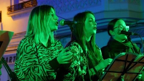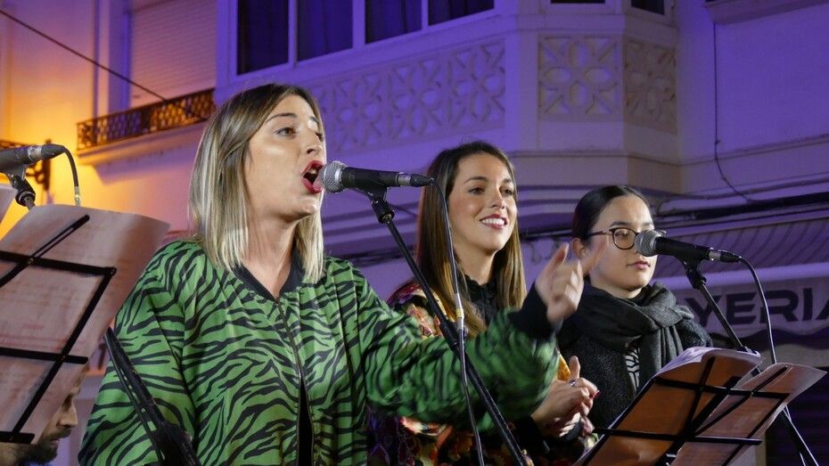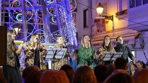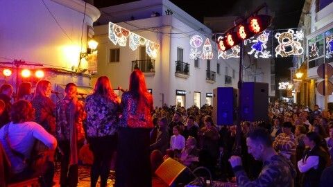 Con las luces ya encedidas, las "Niñas de Rota" se han subido al escenario para animar la tarde con un repertorio de canciones propias y típicas de estas fechas que han ambientado parte de esta tarde en la que el tiempo acompaña y la zona de bares de la Costilla se presenta concurrida con alguna que otra actuación en directo.