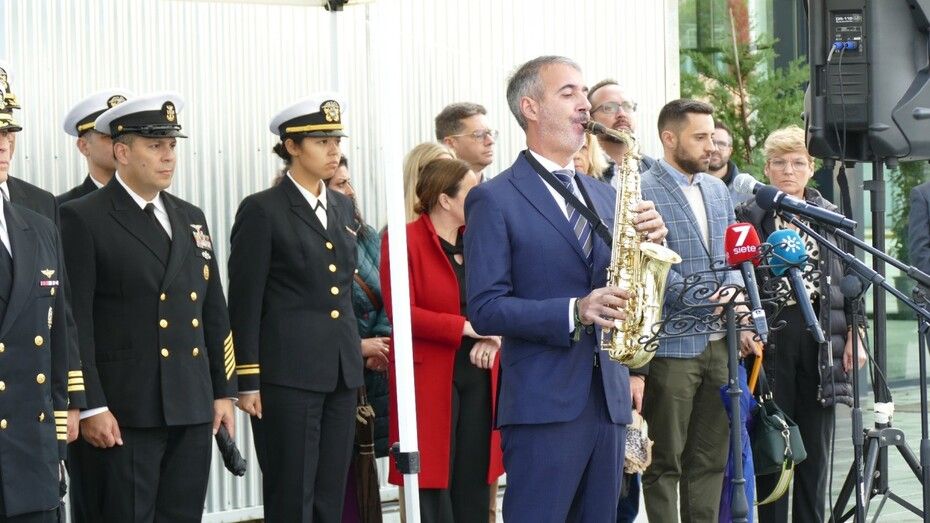 El acto terminó con el himno de EEUU interpretado por el oficial Andrew Taylor, y con el de España, a cargo de Enrique Galán al saxo.