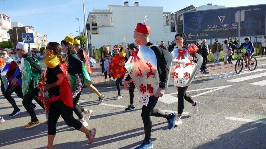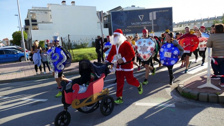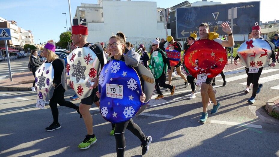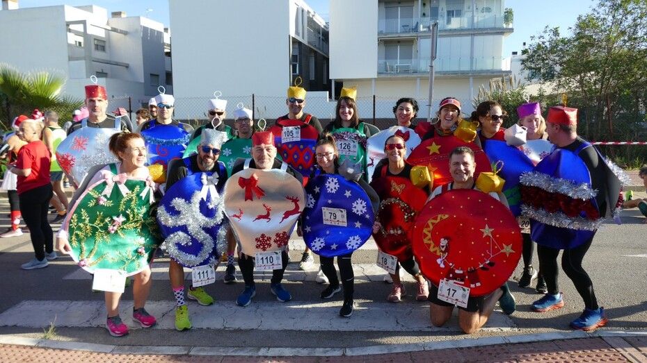 El ambiente navideño se ha dejado notar igualmente en esta carrera gracias a algunos gorros de Papá Noel, gafas navideñas y un numeroso grupo de bolas de Navidad que han dado color. Además, la cita solidaria se ha cumplido una vez más, con la aportación de alimentos que se destinarán a la "Cocina solidaria" y ayuda a la Asociación de Familiares de Enfermos de Alzheimer "El Arenal".
