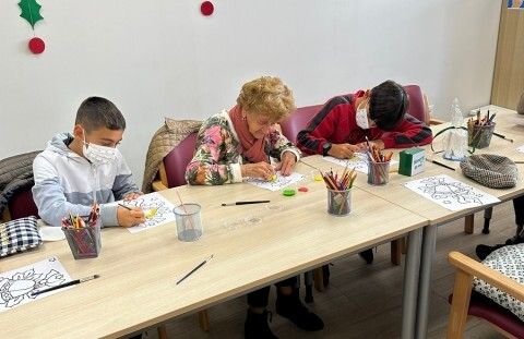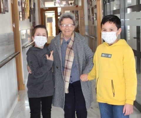 Los escolares de ambas clases se trasladaron ayer hasta el centro "Manuela Forja" para regalar a los usuarios una manualidad que habían realizado previamente en las aulas y propiciar con esta entrega del detalle, una dinámica intergeneracional animándolos a interaccionar con los usuarios del centro que acogieron encantados la visita.
