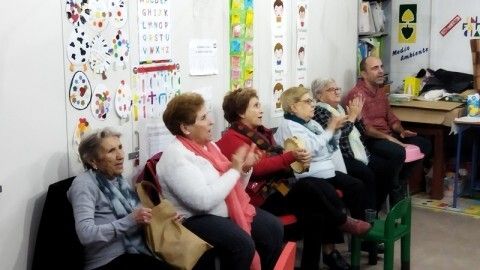 Por un lado, los usuarios del taller de manualidades para personas mayores celebraron su convivencia navideña contando para ello con la roteña Carolina Pacheco, que se acercó hasta las instalaciones que Cruz Roja tiene en el Centro Social "El Molino", donde compartieron villancicos y canciones populares, además de algunos productos propios de estas fechas.