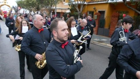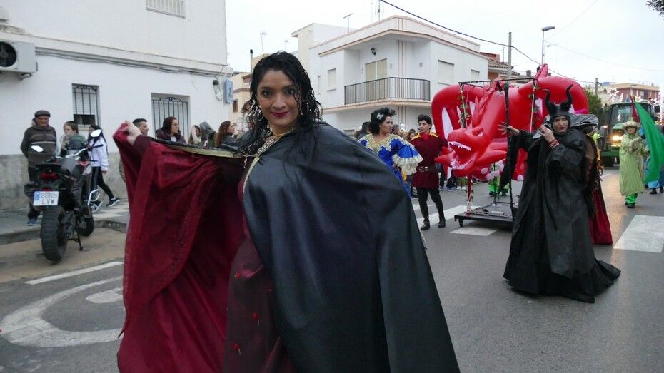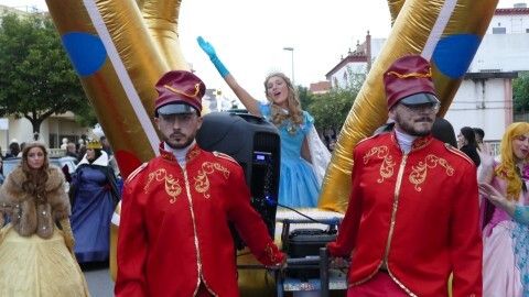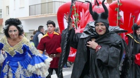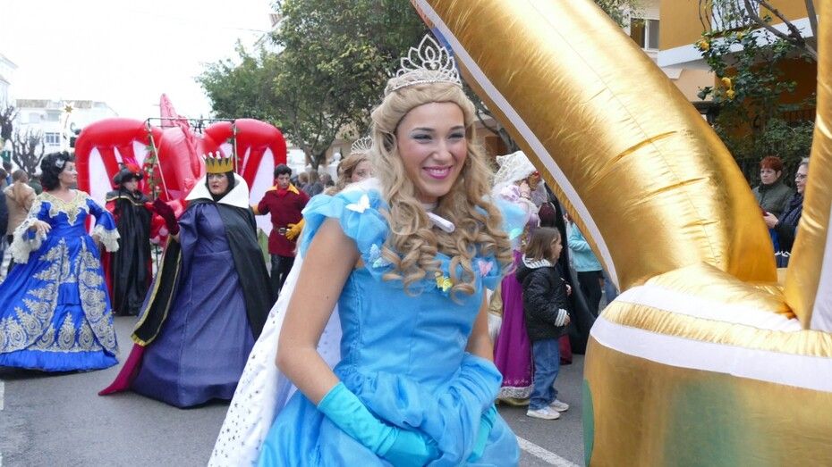 Abría el cortejo la banda de música de la Hermandad de Nuestro Padre Jesús Nazareno, a la que seguía este año como novedad, unos personajes Disney saludando y bailando aportando algo de color a una tarde gris por el mal tiempo, que hacía mirar al cielo constantemente, pero que parece que se salvará de la lluvia.