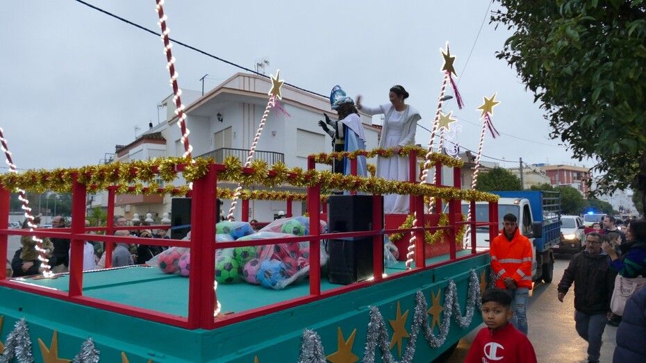 Este año, el Cartero Real y la Estrella de la Ilusión en una pequeña carroza han ido saludando y lanzando algunas pelotas a su paso, lo que siempre motiva a muchos niños que las toman como auténticos trofeos.