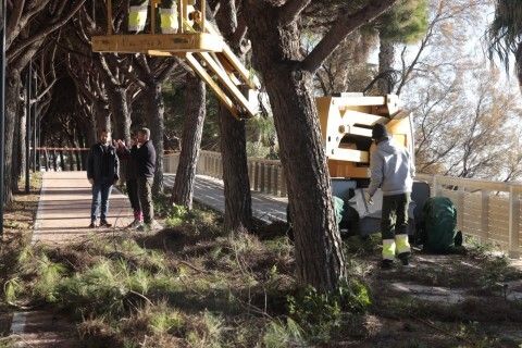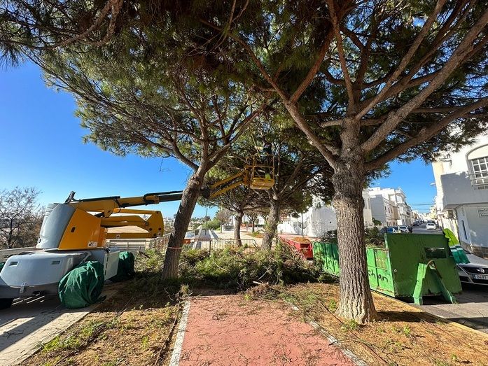 Para ver el desarrollo de estas labores, Jesús López Verano ha estado esta misma mañana supervisando  la poda en la zona de la calle Francisco Lucero, incluida en este plan, que no solo abarca las actuaciones estudiadas y programadas por los técnicos municipales, sino también peticiones de los ciudadanos. En este caso concreto, los vecinos de esta calle llevaban tiempo demandándolo y desde la delegación se ha esperado a que terminara la obra del paseo marítimo del Rompidillo por ese tramo para proceder a un importante clareo de la copa de los pinos.