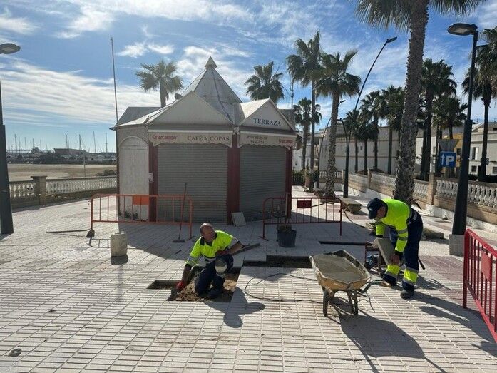 Durante estos días, el Ayuntamiento de Rota está llevando a cabo varios trabajos de puesta a punto final de la zona del paseo marítimo para completar la obra que ha servido para darle una nueva imagen.