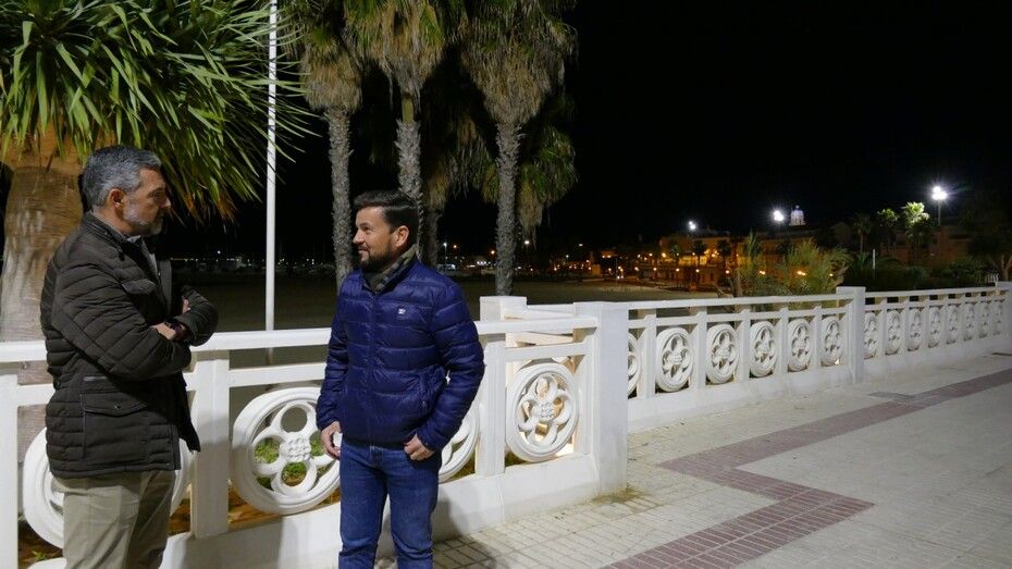 Para ver el resultado de la actuación, el alcalde de Rota, Javier Ruiz, y el delegado de Servicios Generales, Jesús López, han estado hoy en la zona comprobando la mejora sustancial que supone volver a contar con la posibilidad de que la playa del Chorrillo-Rompidillo se ilumine de noche aportando más seguridad y también otras vistas de esta zona de Rota.
