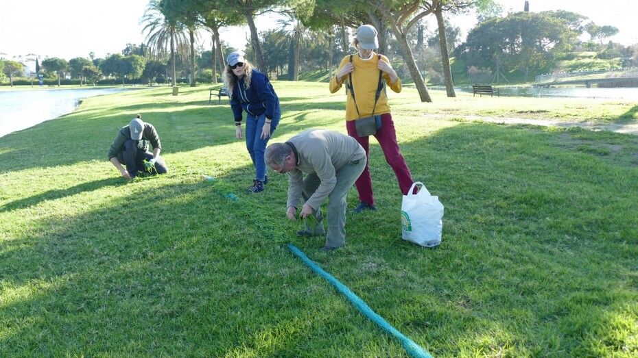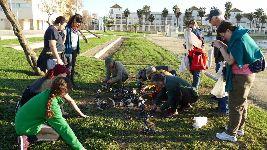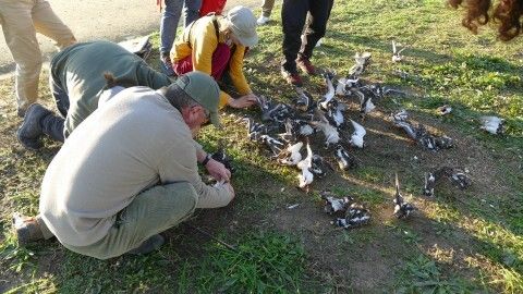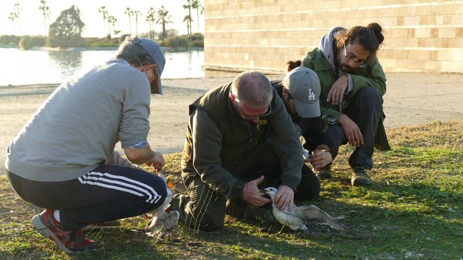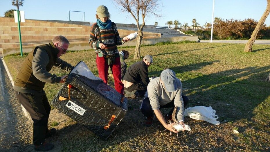 Varias tardes al mes desde hace ya casi cinco meses, Damián y Manolo, junto a un grupo de voluntarios, pasan varias horas en el entorno de los lagos de Costa Ballena. Allí esperan pacientemente hasta que alguna gaviota caiga en la red que previamente han extendido sobre el terreno y que camuflan muy bien para no ser descubierta, ya que las gaviotas son muy listas y si ven algún elemento extraño a lo habitual, ni se acercan. Para convertir la zona de captura en un sitio atractivo, Julio, otro colaborador, lanza pan... y esperan con paciencia.
