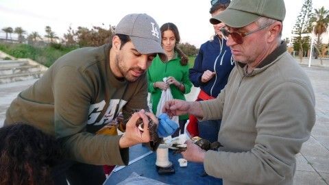 Hay tardes en las que las gaviotas no pican el anzuelo y se van de vacío, pero hay otras en las que la fortuna está de su lado y llegan a atrapar hasta 13 de un tirón. Comienza entonces el trabajo de campo: cuando caen en la red, toca liberarlas y meterlas en cajas acondicionadas con agujeros para que estén cómodas mientras rápidamente, casi siempre cuando cae la tarde, montan la mesa donde una a una se van anillando. El proceso es igual con todas, empezando por identificar de qué especie se trata. Fundamentalmente, en esta zona se puede ver a la gaviota picofina, la cabecinegra, la reidora, la vuelvepiedra o las gaviotas enanas, estas últimas, muy difíciles de capturar.