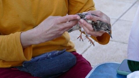 Una vez identificadas, se procede a su anillamiento, para ello, Manolo y Damián con la ayuda de los voluntarios, colocan la anilla de PVC que lleva una inscripción, fácil de leer con telescopio, prismáticos o cámara a simple vista, un código de color y una anilla metálica. Una vez que se le mide la longitud del ala y del tarso, se pesa y se anota todo en un cuaderno; luego se toman varias fotografías para hacer en el futuro plantillas de identificación y se liberan para que vuelvan a su hábitat. Con este trabajo previo ya se tiene material para ver la diferencia entre ejemplares, la variedad entre individuos, los cambios de plumaje, color del pico y las patas en función de la estación del año, etc.