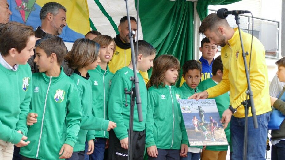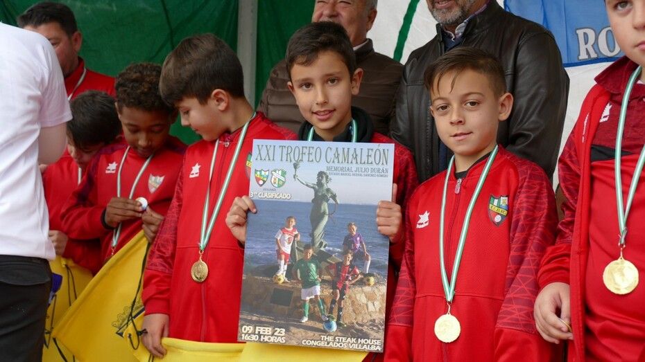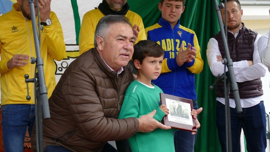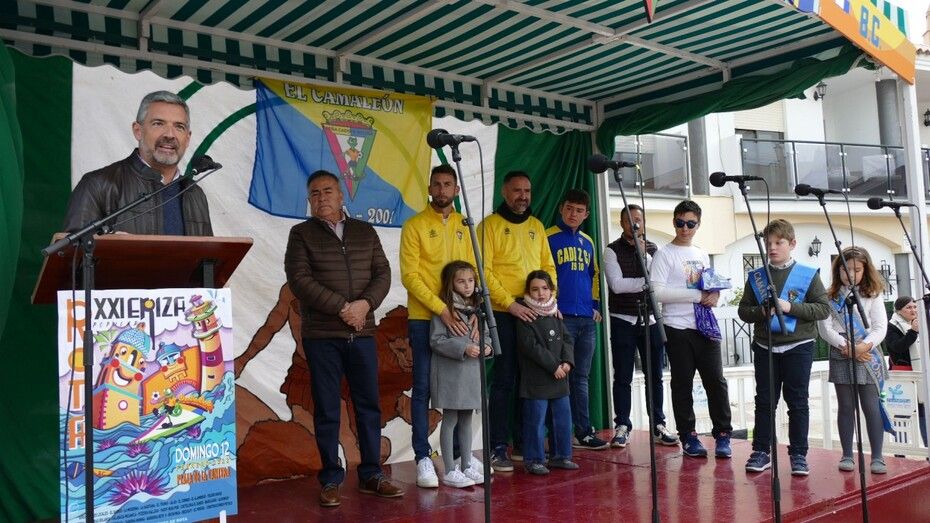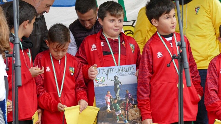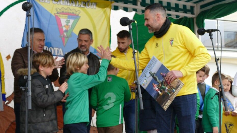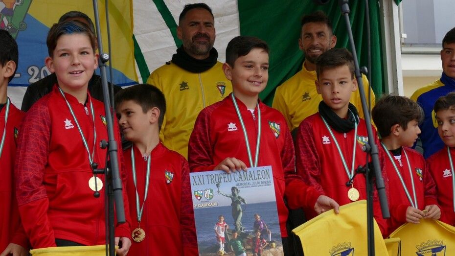 Sobre el escenario los han acompañado el presidente de la peña cadista, Miguel Ángel Cebrián, el futbolista roteño José Mari, el ex jugador del Cádiz, Manuel Villalba, el delegado de Deportes, José Antonio Medina, y el alcalde de Rota, Javier Ruiz, que se han encargado de entregar las placas. Los dos representantes políticos han valorado positivamente la organización de este Trofeo Camaleón "Memorial Julio Durán" por lo que representa para el fútbol de cantera, y han agradecido además la labor que hace la peña cadista con la Erizá Popular que en esta edición ha conseguido de nuevo que la plaza de La Cantera esté concurrida y el ambiente de Carnaval se viva durante este domingo.