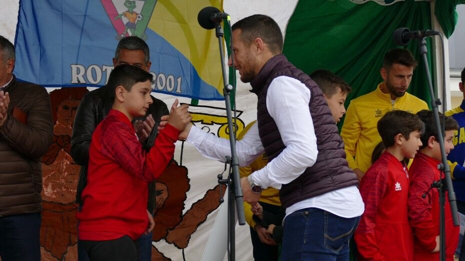 Como siempre la Erizá Popular arranca con un acto oficial de entrega de premios a los futbolistas de la cantera que han participado en el Trofeo Camaleón "Memorial Julio Durán", que este año ha cumplido su 21 edición y que se disputó el pasado 9 de febrero en el estadio "Manuel Bernal Sánchez-Romero". Los jugadores del CD Rota-Rosario y de la UD Roteña han sido los protagonistas de una competición que pretende fomentar el deporte base y la convivencia entre equipos. Este año, los ganadores han sido el CD Rota-Rosario A, que han recogido de manos de José María Martín-Bejarano, José Mari, capitán del Cádiz CF, la placa de campeones. Les ha seguido en la clasificación la UD Roteña A como segundos, la UD Roteña B como terceros y el CD Rota-Rosario B en cuarto lugar. Todos han recibido una medalla por su participación además de una bolsa de obsequio que han entregado la ninfa de la peña "El Camaleón", Ana Laynez, y el atlante Curro Herrera. Además, Oliver Diéguez López ha sido galardonado como el mejor jugador de la competición.