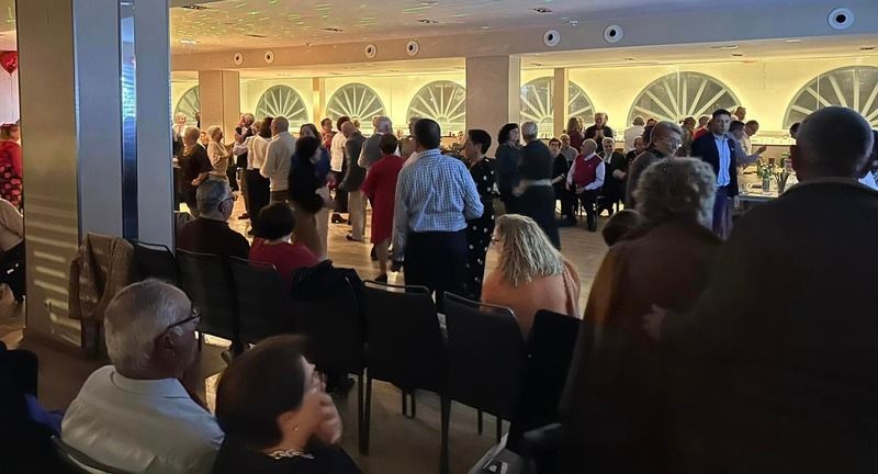 En total, 115 mayores de Rota estuvieron en este hotel disfrutando primero de una cena y luego de un baile en el que el delegado del Mayor, Jesús López Verano, estuvo saludando a los asistentes, encantados con la oportunidad de celebrar el 14 de febrero de una forma especial.