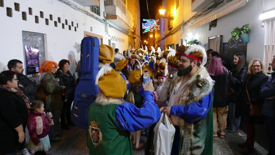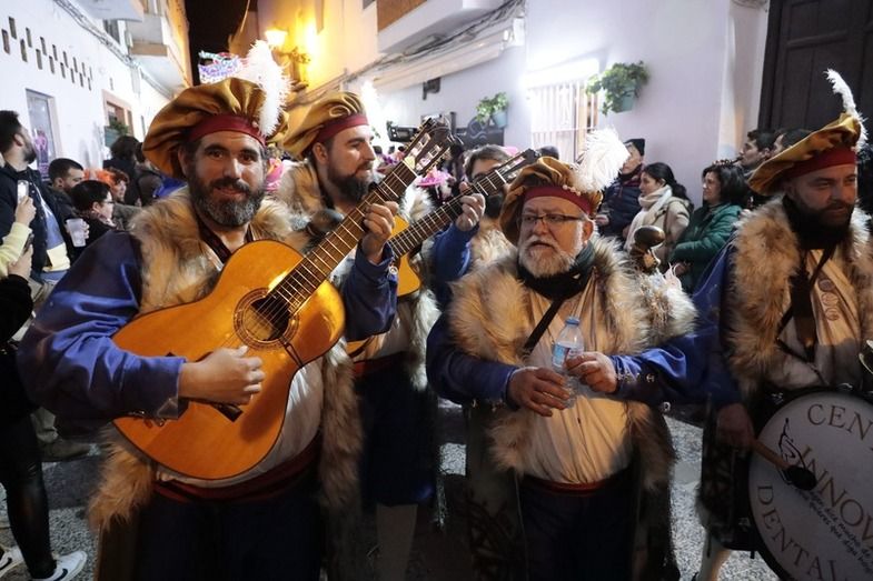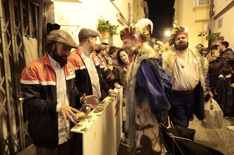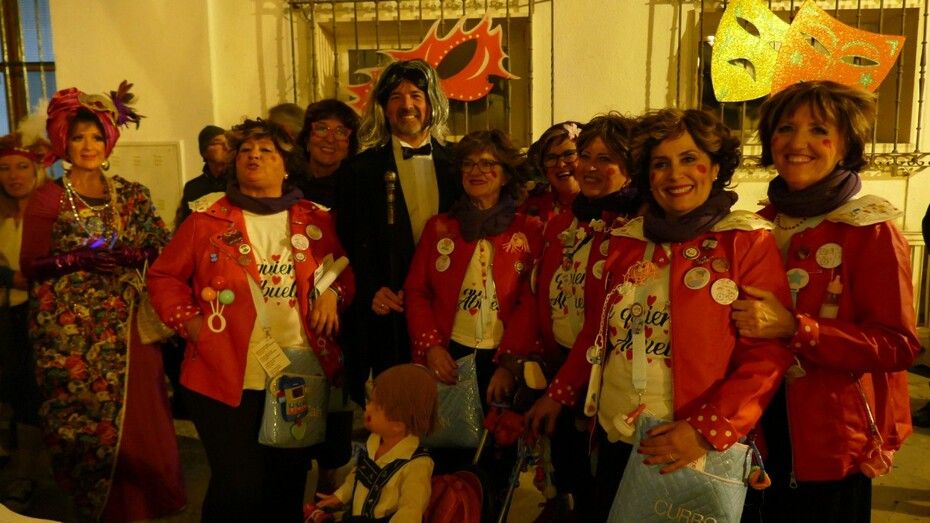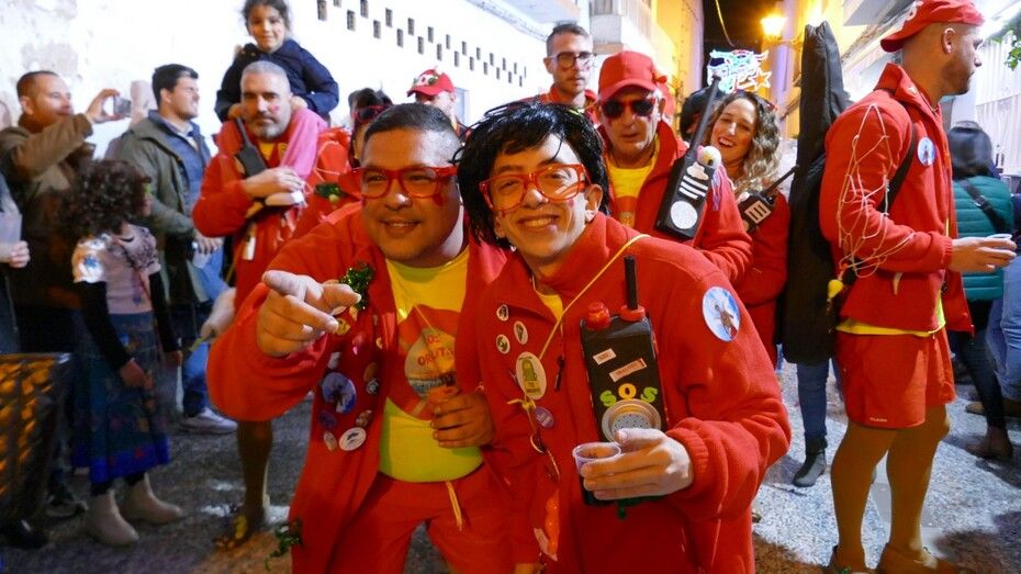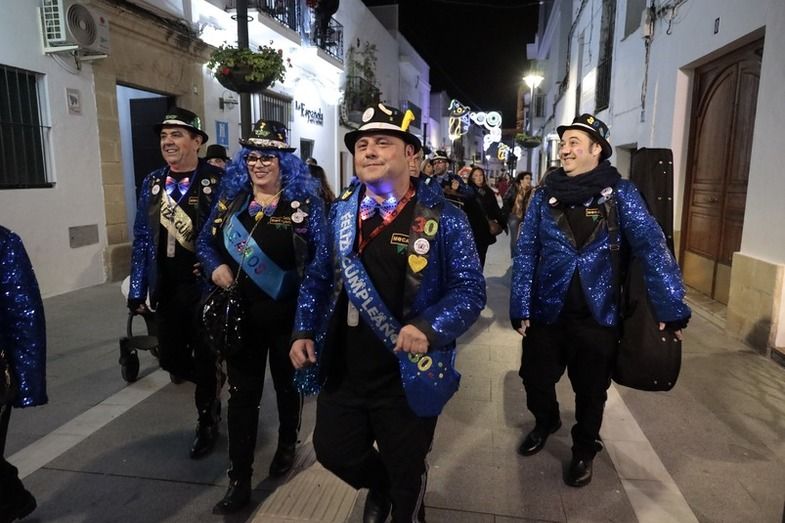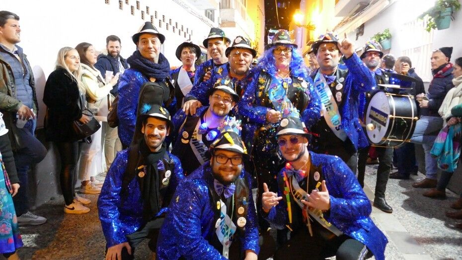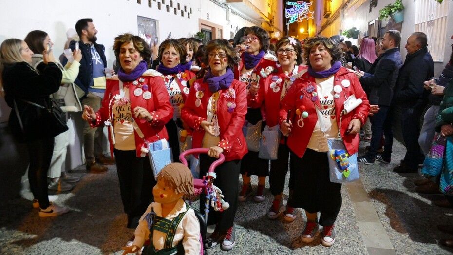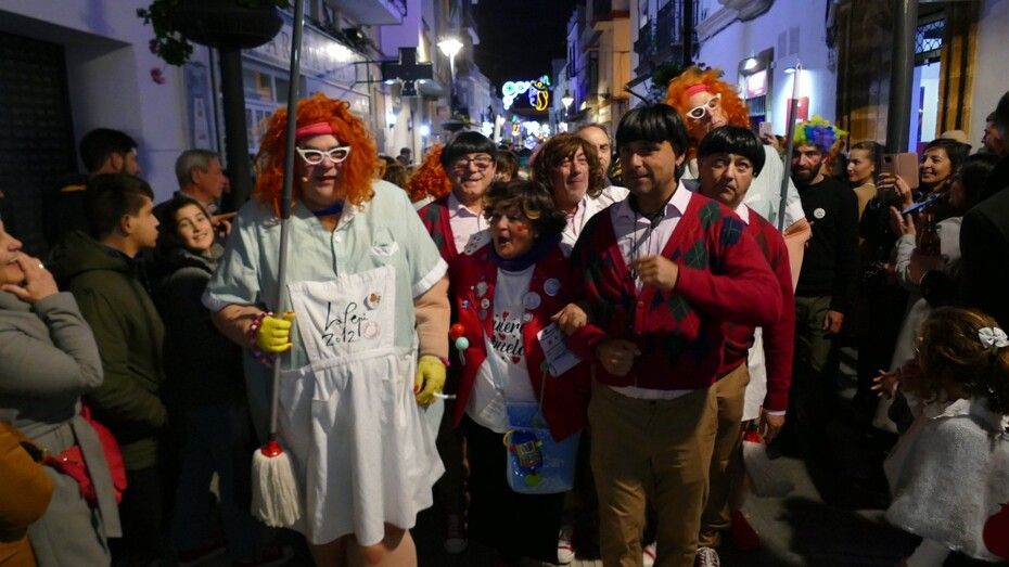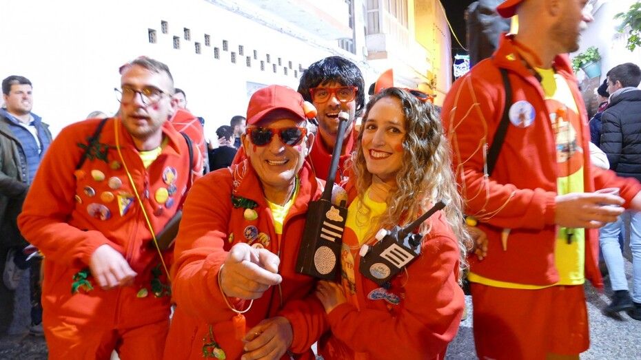 Agrupaciones locales fueron haciéndose hueco en esquinas y entre corrillos para hacer reír con su ironía, sarcasmo y gracia carnavalera, lo que desembocó en que el pasacalles que normalmente acompaña al pregonero hasta la plaza de España, estuviera más que animado.