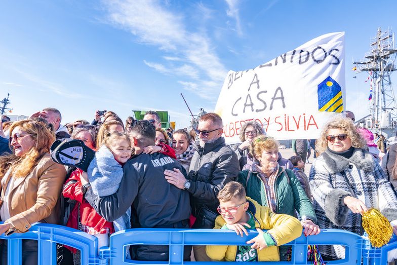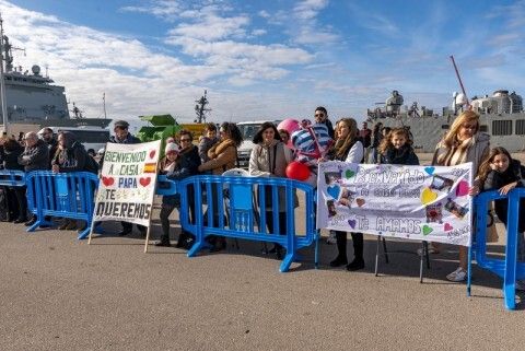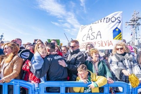 Pancartas de bievenida, besos, abrazos y algunas lágrimas se han visto en este caluroso recibimiento que ha recibido la dotación de este buque que durante casi cuatro meses, ha formado parte de una misión cuyo objetivo principal es erradicar la piratería y proteger a los buques del Programa Mundial de Alimentos (WFP) y otros buques vulnerables; además de monitorizar otras actividades ilícitas como la pesca ilegal o los tráficos ilícitos, que dificultan y ralentizan el desarrollo de algunos países de la región.
