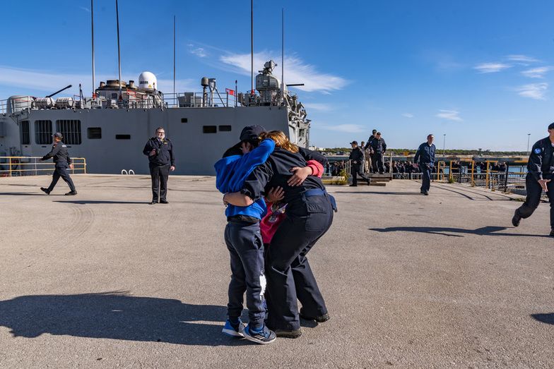 La llegada a la Base Naval de Rota ha sido, como suele ser habitual, un momento muy especial para los numerosísimos familiares de la dotación, que aguardaban en el muelle de la Base, al reencontrarse con sus seres  queridos.