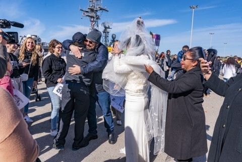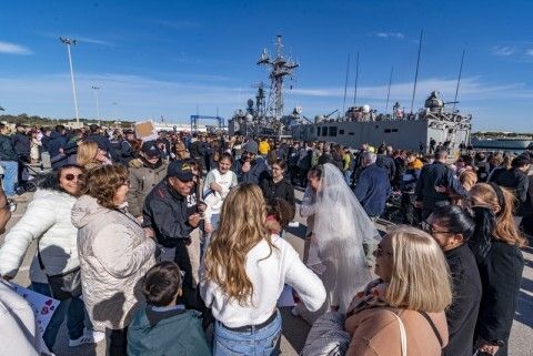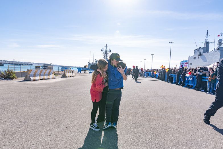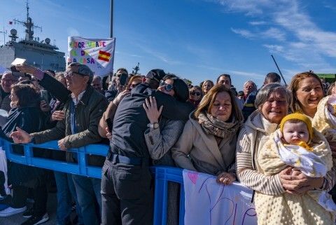 Quedan atrás los meses de ausencia, en especial, durante las fiestas navideñas, en los que, como siempre, el apoyo familiar desde la “retaguardia” ha hecho posible que los 229 hombres y mujeres embarcados en la fragata hayan cumplido su misión con éxito. Hoy, ha sido un momento especial de emoción que ha marcado el reencuentro, donde ha habido incluso peticiones de matrimonio.