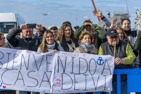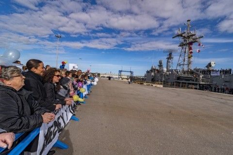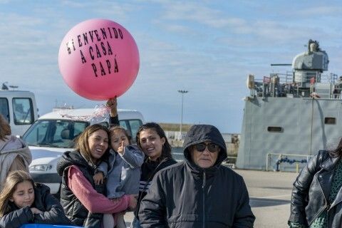 La fragata "Santa María" regresa a la Base Naval donde recibe una calurosa bienvenida de familiares