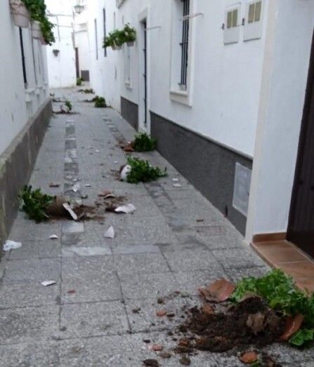 Muchos de esos maceteros dan a estas calles del casco antiguo una identidad propia andaluza que por actos como estos se ven estropeada. Desde la delegación de Limpieza se están retirando los restos de macetas y tierra esparcida lamentando el acto vandálico.