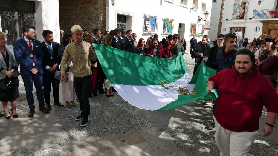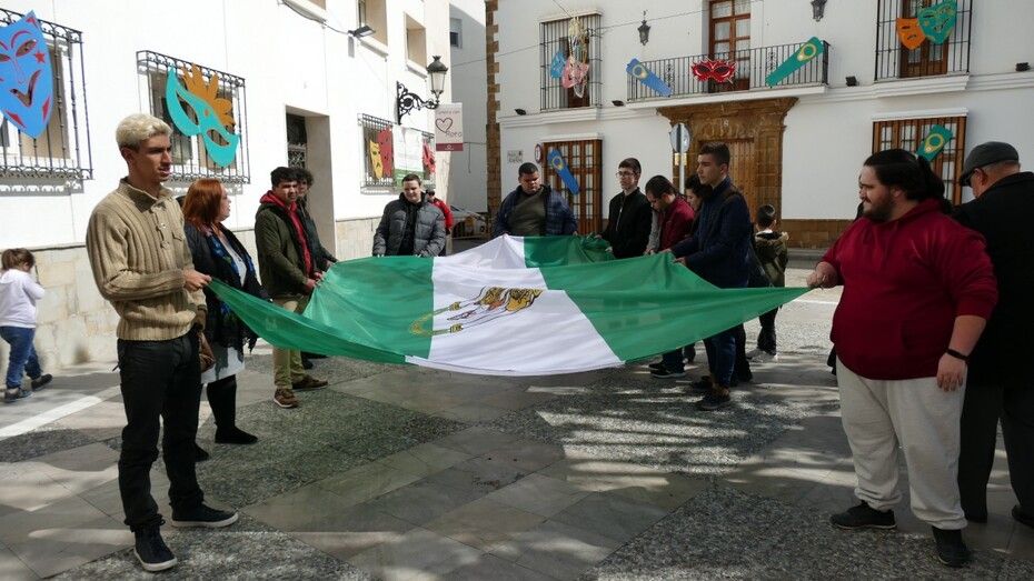 [Img #186268]Tras el pleno extraordinario celebrado en el Castillo de Luna con motivo del Día de Andalucía, los actos por este 28 de febrero se han trasladado a la plaza de España donde se ha procedido al izado de la bandera andaluza que este año se ha dedicado a la integración. Por eso, han sido los chicos de la asociación "Aula TGD", que apoya y trabaja por las personas con trastornos del desarrollo y necesidades educativas especiales, los protagonistas de este momento que se ha celebrado en torno a la una del mediodía.
