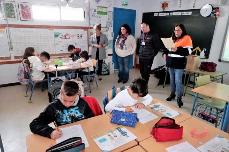 Alumnos de los colegios Pedro Antonio de Alarcón, Maestro Eduardo Lobillo, Luis Ponce de León, San José de Calasanz, Salesianas, Pozo Nuevo y Salesianos se han acogido a la actividad en la que han querido estar presentes las responsables municipales de Protección Civil y de Educación, Luisa Fernández y Laura Almisas, que han visitado uno de los talleres.