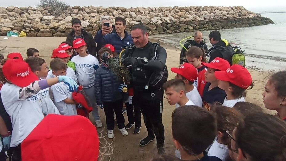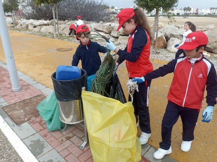 Los escolares de 4º curso de Primaria de los colegios Azorín y Salesianos han participado en una actividad medioambiental celebrada en la escuela municipal de vela "Theresa Zabell", relacionada con la recogida y reciclaje de residuos existentes tanto en la playa del Rompidillo como en el fondo marino de los aledaños de equipamiento.