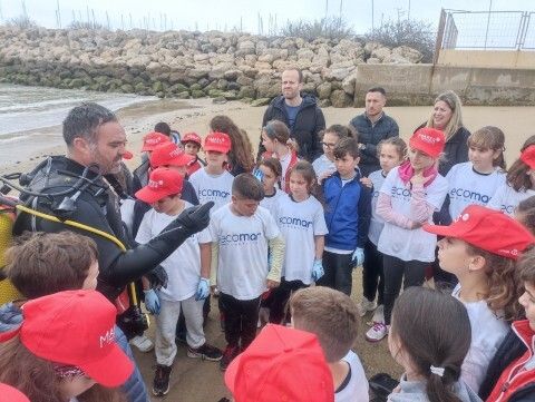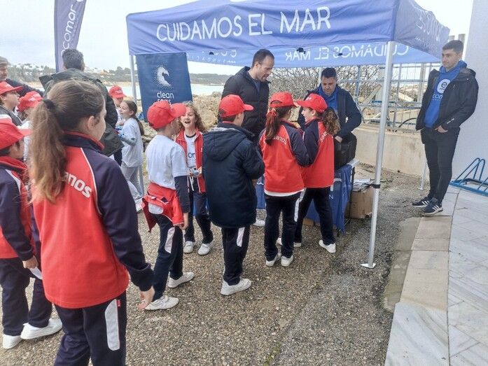 Durante la mañana de este miércoles, de la mano de la Fundación Ecomar con la colaboración del Ayuntamiento de Rota y el Club Deportivo "Capitán Garfio", los alumnos y alumnas de ambos colegios han comenzado la actividad con un "Taller azul", celebrado en las instalaciones de la escuela de vela, para continuar con la recogida en la playa, que se ha completado con la limpieza en el fondo con la colaboración de varios buzos del Club Deportivo "Capitán Garfio".