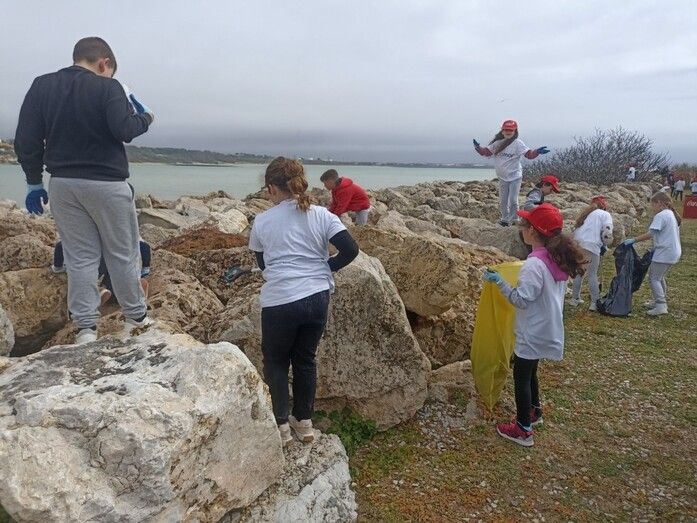 Escolares de Azorín y Salesianos participan en la "Limpieza de costas Mares Circulares", celebrada en la escuela de vela
