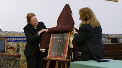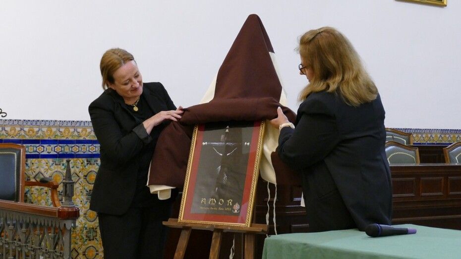 Eran la hermana mayor, Pepi García, junto al teniente de alcalde Encarna Niño, las que descubrían un cartel mientras la roteña Carolina Pacheco entonaba una saeta para hacer más especial el momento. La obra recoge la imagen del Santísimo Cristo del Amor, una fotografía de José Carlos Niño Bernal, ganador por segundo año consecutivo del concurso  que convoca la hermandad.