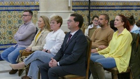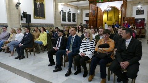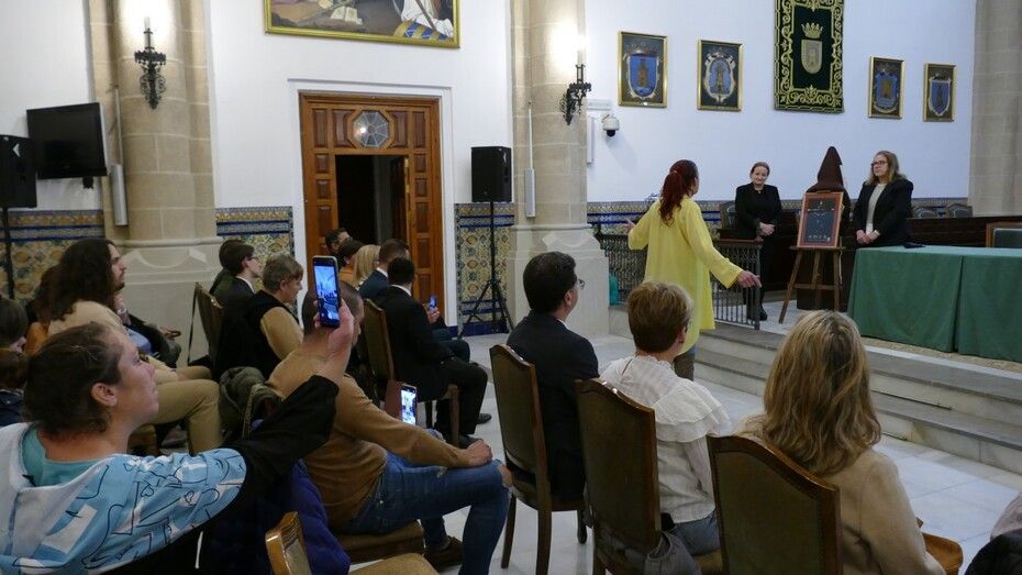 [Img #187159]La Hermandad del Santísimo Cristo del Amor, Nuestra Señora de la Esperanza del Calvario y Nuestro Padre Jesús Resucitado ha presentado esta tarde en el salón capitular del Palacio Municipal Castillo de Luna, el cartel anunciador del próximo Lunes Santo 2023. Una cita a la que han acudido algunos hermanos de la hermandad, cofrades y miembros de la Corporación municipal que han querido acompañar a esta cofradía, la más joven de las que procesiona esta Semana Santa de Rota, en un acto que forma parte de la Cuaresma en la que los católicos están inmersos.