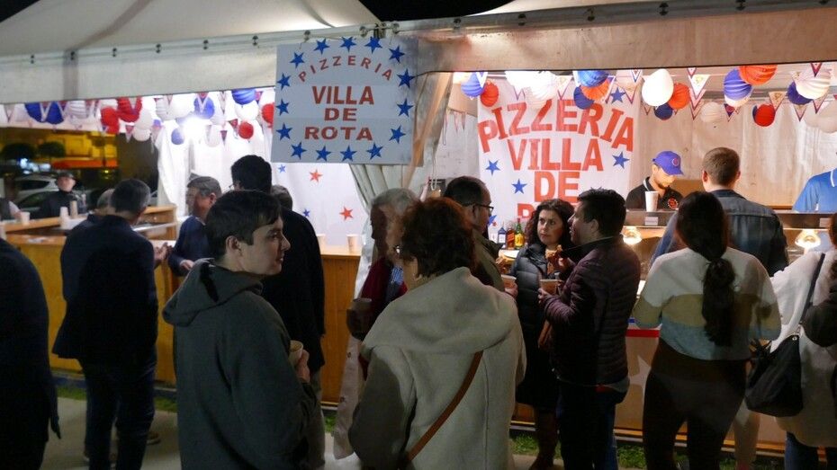 Entre las seis pizzerías participantes suman más de 40 variedades que hasta el domingo se despacharán al precio de 1,20 euros la porción en las carpas que se han dispuesto por el Ayuntamiento de Rota para una cita gastronómica que en pocos años ha conseguido arraigar bien, como ha demostrado esta primera noche. Familias, pandillas de amigos y parejas han llenado el Bulevar Bahía de Cádiz donde de nuevo se ha instalado este festival que llega con ganas y con una promoción previa importante por aquello de que pese a no ser un plato propio de la zona, lleva más de 40 años formando parte de la gastronomía roteña.