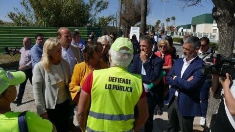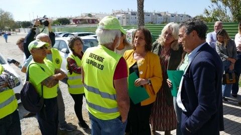 Con motivo de la visita a Rota de la consejera de Salud y Consumo de la Junta de Andalucía, Catalina García, en la tarde de este jueves, miembros de la Asociación Roteña en Defensa de lo Público han acudido al lugar de la comparecencia pública para acercarse a la representante del gobierno andaluz.