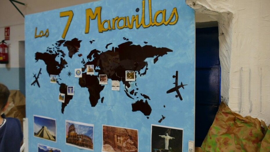 Cada asignatura ha tenido un tiempo dedicado a trabajar una maravilla del mundo asignada por curso, trabajándose en cada una de ellas un aspecto relacionado con el país en el que se ubica, su cultura, forma de vida, gastronomía, lengua, costumbres, etc. Un proyecto global que ha permitido a los estudiantes, adaptando las actividades a realizar, conocer y profundizar en La Gran Muralla China, situada en China, de cuyos trabajos se han encargado los alumnos de Infantil; en el Machu Pichu ubicado en Perú, que han trabajado los estudiantes de 1º; el Taj Mahal de la India del que se han encargado los de 2º curso; la fachada principal de Petra en Jordania, que han trabajado los alumnos de 3º; el Cristo Redentor de Brasil en el que se han centrado los alumnos de 4º; el Chichen Itza en Méjico, que ha sido el centro de los trabajos del alumnado de 5º curso: y el Coliseo en Roma de los estudiantes de 6º.