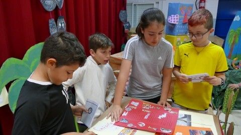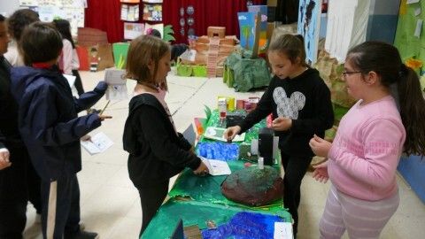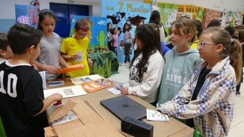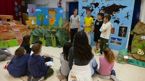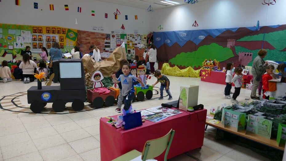 En el salón de actos del Pedro Antonio de Alarcón todo ha quedado montado para que tras las vacaciones de Semana Santa, las familias puedan disfrutar del trabajo que todos los cursos han realizado y que ayer viernes, los propios alumnos iban explicando por grupos al resto de clases del colegio de modo que fue una exposición muy interactiva donde dieron muestras de todo lo que han aprendido.