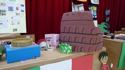 Cada stand representaba una maravilla del mundo y en cada uno estaban recogidas algunas curiosidades con murales, manualidades, vídeos realizados por los propios alumnos, etc. En el centro de todo, un tren de cartón como nexo de unión entre estos siete monumentos destacados del panorama mundial de modo que los alumnos se han convertido en parte en viajeros, pasando por cada maravilla y sellando el pasaporte que daba fe de su visita.