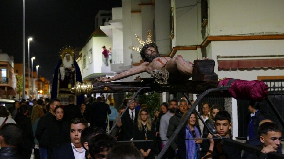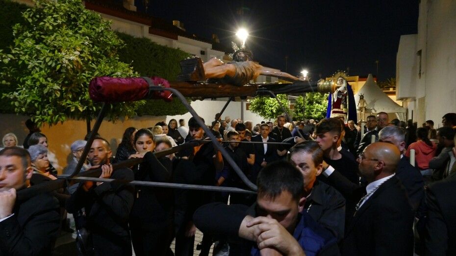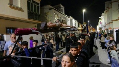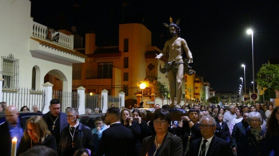 Con un cortejo de hermanos portando cirios y devotos en la calle, se ha llevado a cabo este traslado obligado por las obras que se están acometiendo en esta parroquia de la barriada de El Molino que impide realizar las distintas estaciones de penitencia partiendo de su sede canónica.