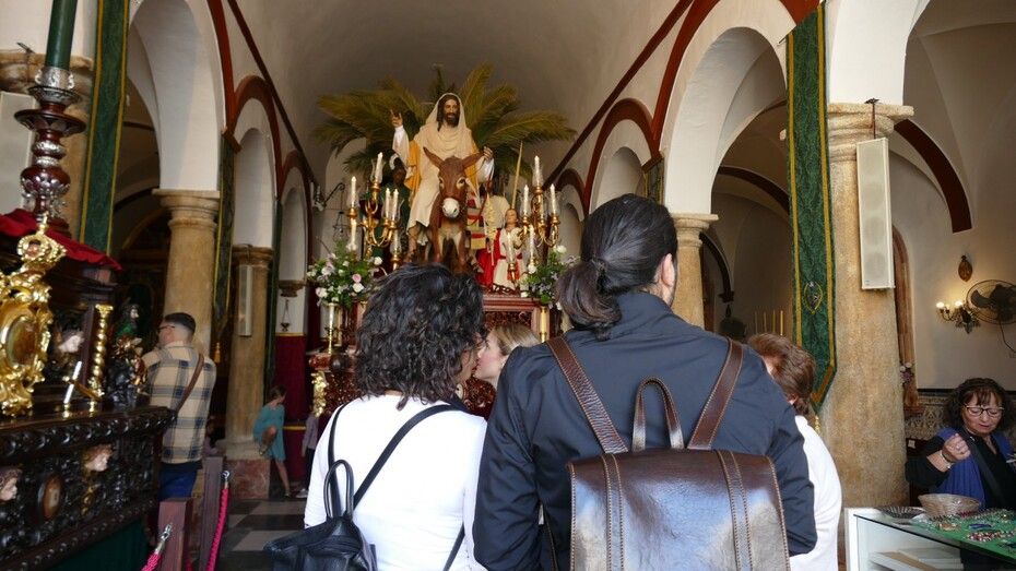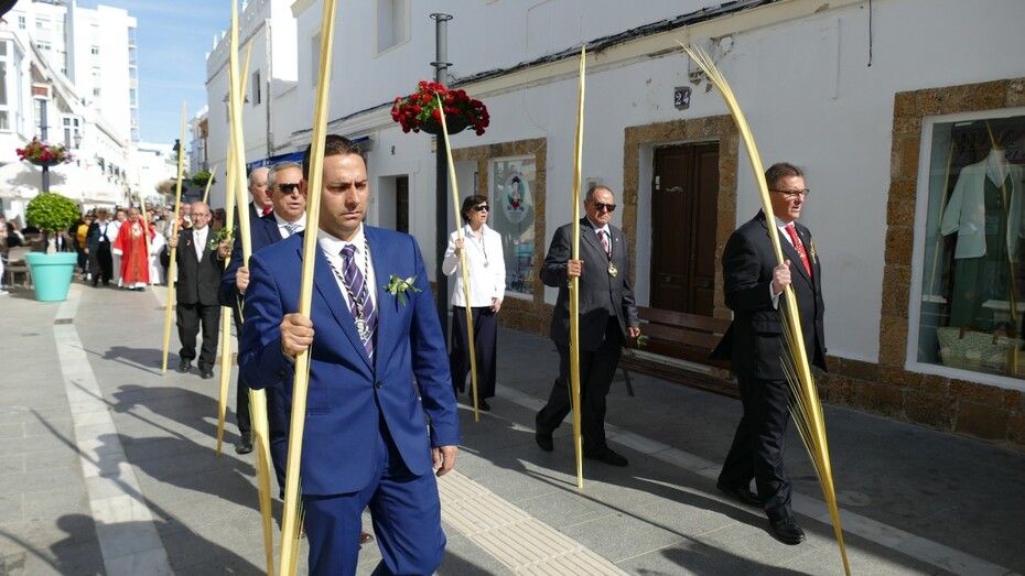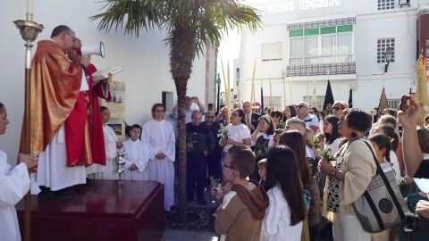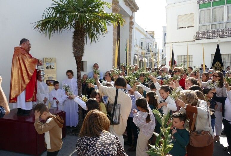 En Rota, el protagonismo lo tiene hoy la capilla de San Roque donde esta mañana se ha procedido a la bendición de las palmas que por la tarde portarán los hermanos de la Hermandad de la Veracruz acompañando a Nuestro Padre Jesús de la Paz en su Triunfal Entrada en Jerusalén por las calles.