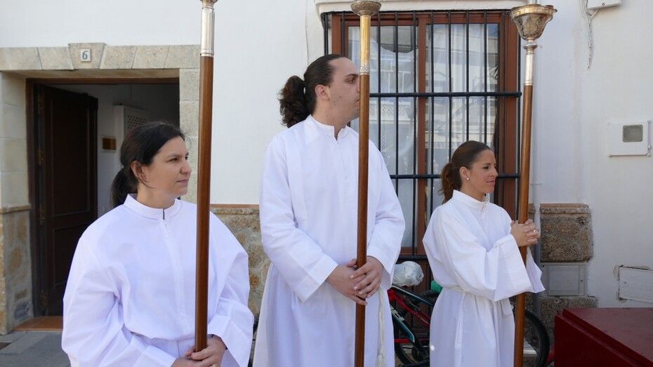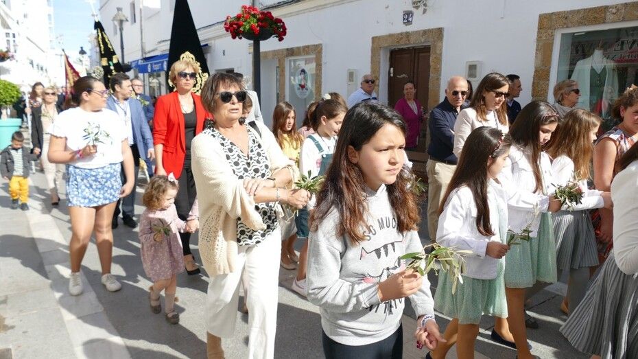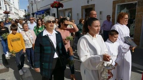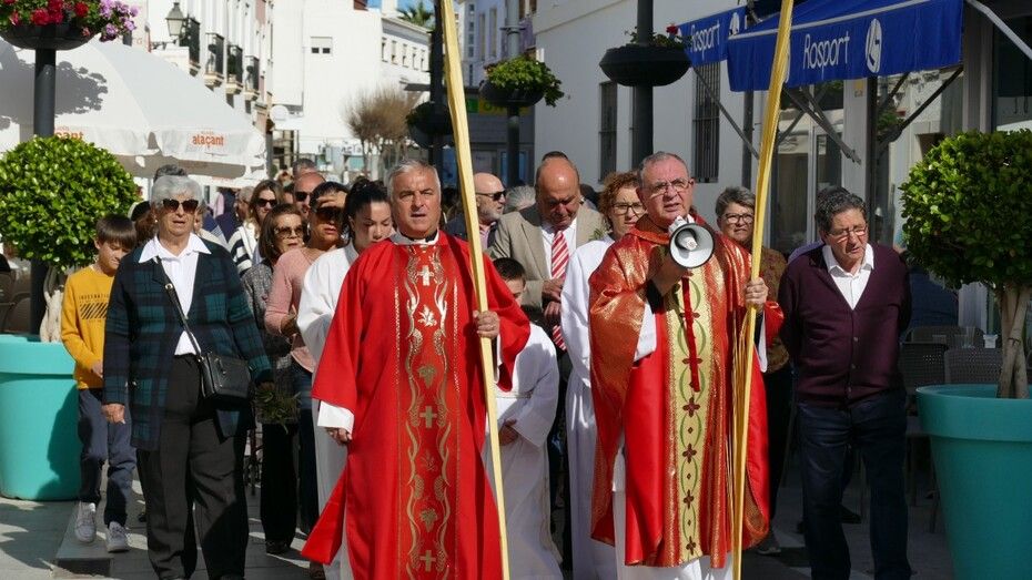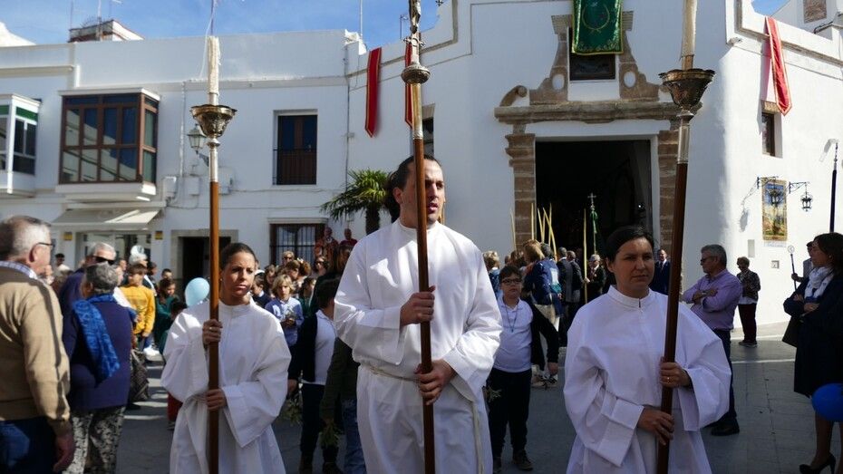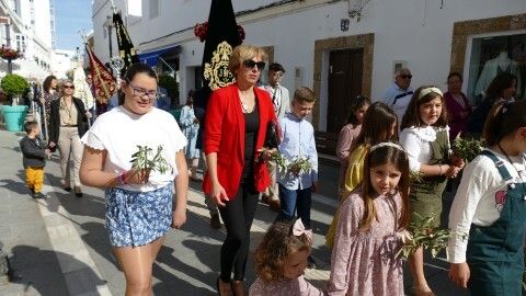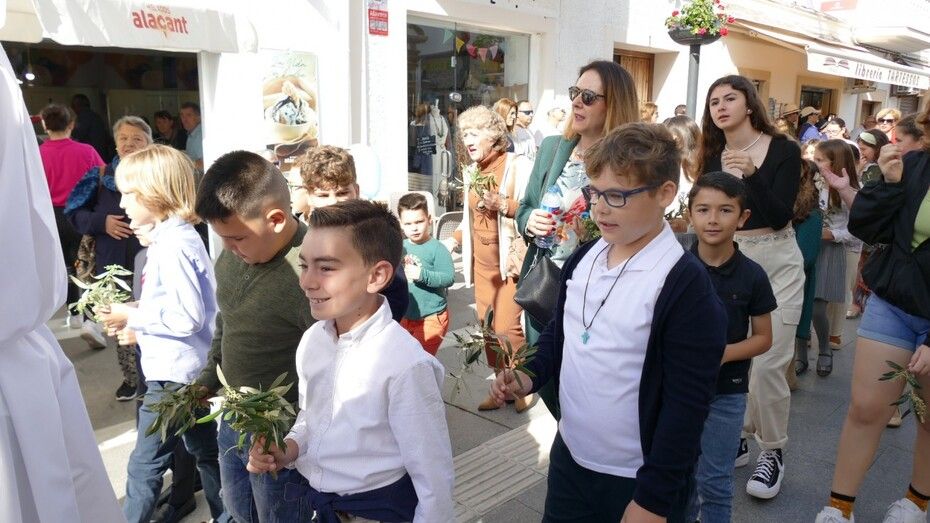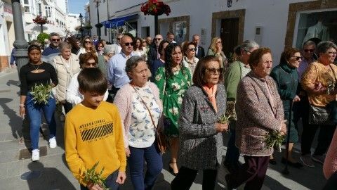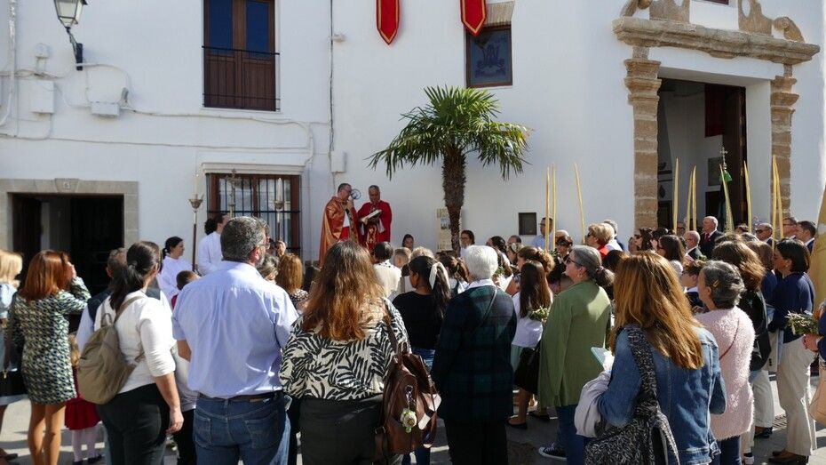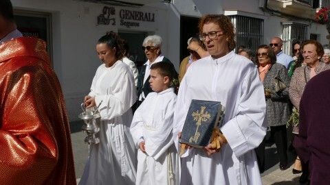 Minutos después, la cruz parroquial iniciaba el cortejo que ha recorrido las calles céntricas hasta llegar a la parroquia mayor donde se ha celebrado la misa de palmas.